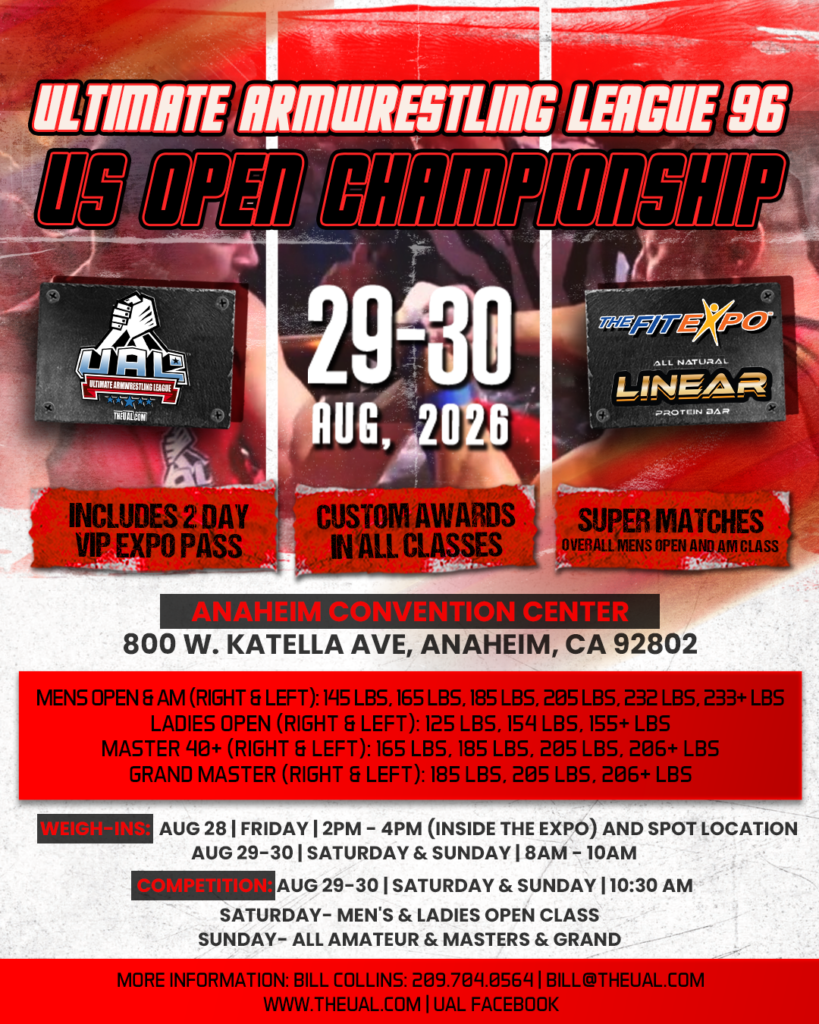 The Ultimate Armwrestling League (UAL) delivered on its highly anticipated 2023 United States Open Championship at the Anaheim Convention Center. Unquestionably a Clash of Titans in the world of Armwrestling, this championship was a thrilling showcase of raw strength, technique, and unwavering determination. Athletes from across the country converged to vie for supremacy, making it a must-watch event for millions of Armwrestling enthusiasts and fans.